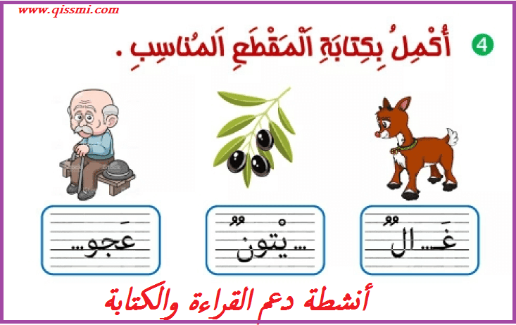 تمارين القراءة و الكتابة لدعم تعلمات الوحدة 4 و 5 المستوى الأول ابتدائي