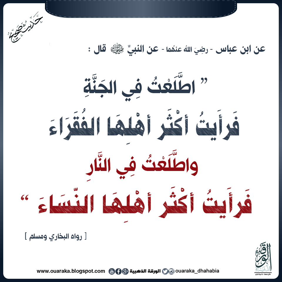 حديث اكثر اهل النار من النساء بس لانهن انت من ح مص يبعتلك اريضة مأحلاك Facebook