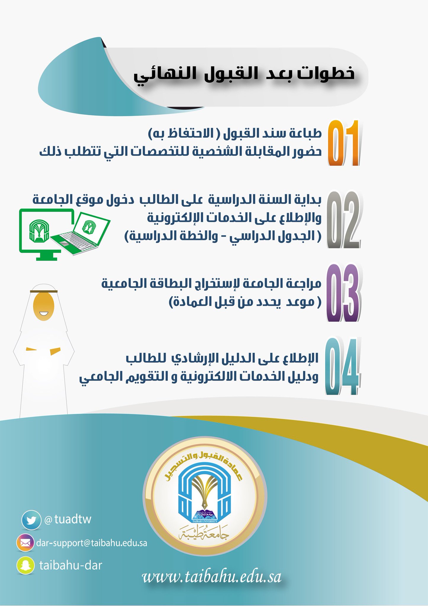 طريقة حساب النسبة الموزونة لجامعة طيبة 1442. ت عتبر النسبة الموزونة التي تضعها الجامعات من أهم معايير القبول فيها حيث أعلنت جامعة طيبة عن كافة المعدلات التي من خلالها سيتم قبول الطالب أو الطالبة في التخصص الذي يرغب به بحيث. قد مضى أكثر من ثلاث سنوات على شهادة الثانوية بدءا من خريجي 1437 1438 هـ. المملكة العربية السعودية تبوك.
