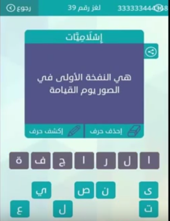 حل سؤال هى النفخة الاولى فى الصور يوم القيامة من لعبة وصلة المجموعة الخامسة لغز رقم 39 صقور الإبدآع