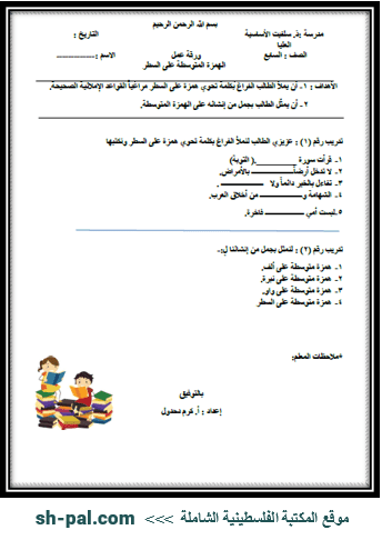 ورقة عمل الهمزة المتوسطة على السطر للصف السابع الفصل الأول المكتبة الفلسطينية الشاملة