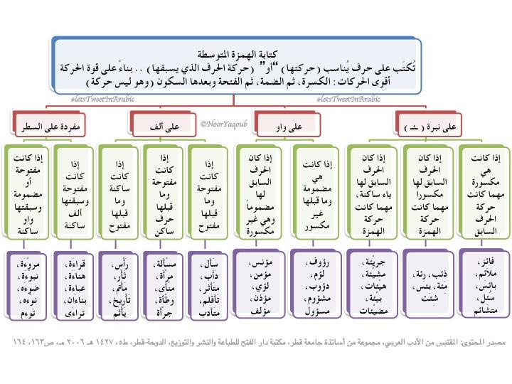 لكتابة الهمزة المتوسطة نلاحظ حركتها وحركة الحرف الذي يسبقها فت كت ب بناء على حرف الحركة الأقوى. وهي الهمزة التي تقع في اخر الكلمة وتقع دوما في حكم الحرف الساكن والذي يتحكم في النطق الخاص بها الحرف الذي يسبقها لذلك يجب مراعاة الحرف السابق عند كتابة الهمزة المتطرفة دون ان يتم النظر الى حركة الهمزة حتى ان كانت حركتها اقوى ولها عدد من الحالات والتي هي كالتالي. ا أ إ ؤ ئ ـئـ ء. تختلف مواضع الهمزة من الكلمة حيث أنها قد تكون في بداية الكلام وقد تكون في اخره وفي أحيان كثيرة أيض ا تكون الهمزة في وسط الكلمة وهي التي تعرف باسم الهمزة المتوسطة وهي قد تكون على السطر أو على حرف الواو أو الياء أو الألف.