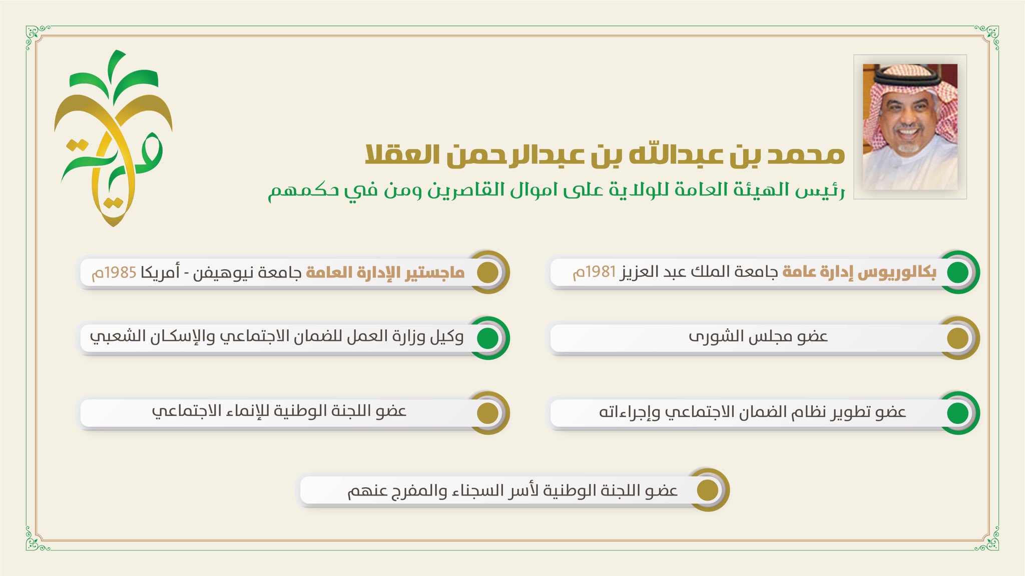 الهيئة العامة للولاية على أموال القاصرين On Twitter العقلا رئيسا للهيئة العامة للولاية على أموال القاصرين ومن في حكمهم Https T Co Qndluhkzkh