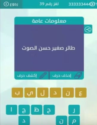 حل لغز طائر صغير حسن الصوت من لعبة وصلة المجموعة الخامسة لغز رقم 39 صقور الإبدآع