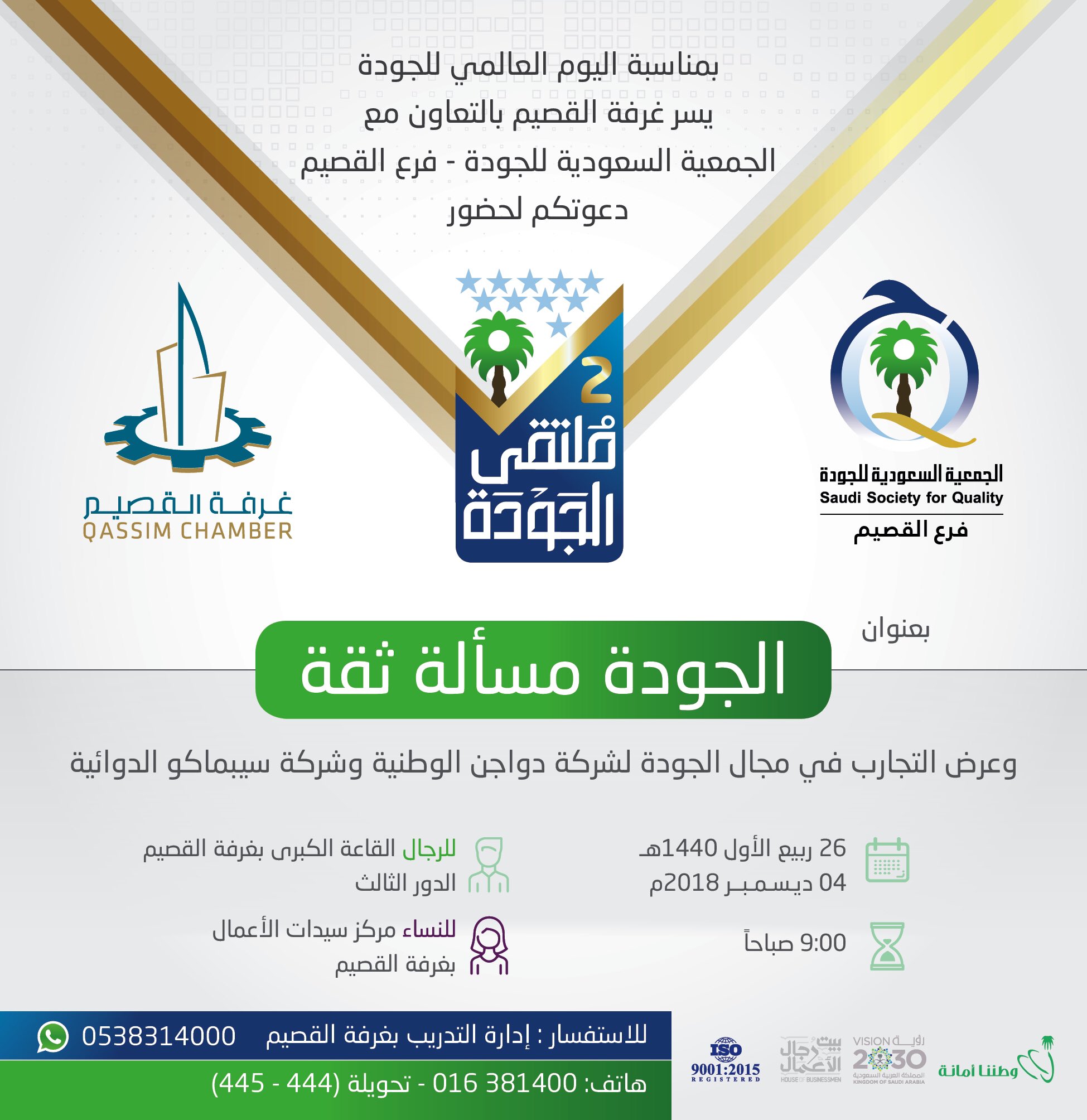 الموقع الرسمي للمجلس السعودي للجودة. كل ما يخص يوم الجودة 1440 تحميل كل ما يخص يوم الجودة دليل فاعليات دورة 1440 هـ 2019 م. بأسبوع وطني للجودة في شهر نوفمبر حيث يتضمن ذلك الأسبوع اليوم العالمي للجودة وهو ثاني خميس من شهر نوفمبر من كل عام والذي يوافق يوم الخميس 12 نوفمبر من. اليوم العالمي للجودة.