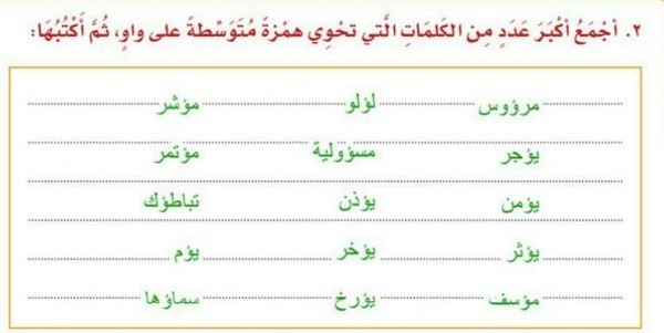 كلمات تحتوي على همزة متوسطة على الواو سؤال وجواب