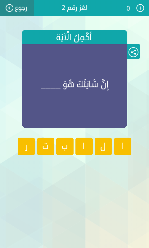 حل اجابة لغز رقم 2 من لعبة وصلة أكمل الاية ان شانئك هو من المجموعة الثانية صقور الإبدآع