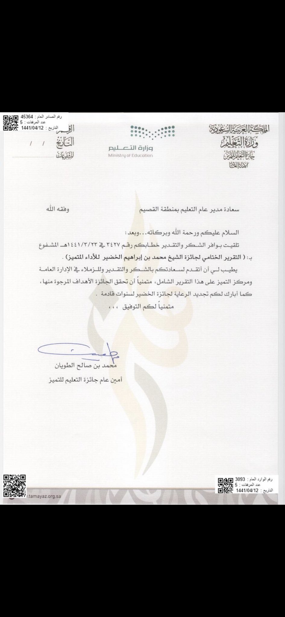 اهداف جائزة التعليم للتميز. إعداد ملفات جائزة التعليم للتميز فئة المشرف التربوي التسجيل رقم 2 إدريس بوابة الارتقاء. أعلنت جائزة الملك عبد العزيز للجودة عن أن فرق التحكيم تقوم حاليا بدراسة وتحكيم نتائج التقييم والزيارات الميدانية للمنشآت المتنافسة في دورتها الرابعة وكشفت عن أنه من المتوقع إعلان أسماء. التعليم العالي للتميز العلمي من. تمنح جائزة وزارة التعليم التعليم العالي التقديرية للتميز العلمي لخمسة من العلماء والباحثين السعوديين وفقا للشروط الآتية.