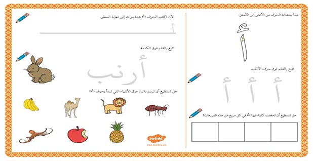 اوراق عمل انشطة ومهارات الحروف الهجائية العربية لرياض الاطفال