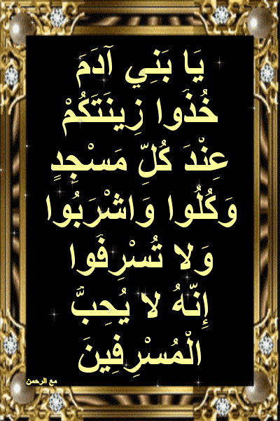ي ا ب ن ي آد م خ ذ وا ز ين ت ك م ع ن د ك ل م س ج د و ك ل وا و اش ر ب وا و ل ا ت س ر ف وا إ ن ه ل ا ي ح ب ال م س ر ف ين تفسير ابن كثير الأعراف 31