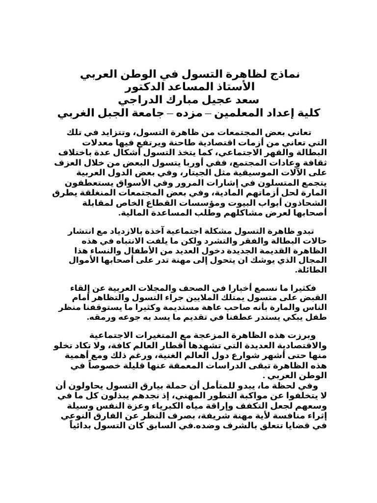 بحث علمي متكامل عن التسول. بحث علمي كامل عن التوحد مع المراجع pdf 08 أغسطس 2019 2019 08 08t10 54 00 07 00 2020 10 13t06 46 18 07 00 طالب علم النفس. ظاهرة التسول لا توجد في وطن معين فهي ظاهرة في العالم كله و منتشرة في كل البلاد سواء بلد غنية أو فقيرة ويعد التسول من الأمراض المنتشرة الذي لا يخلوا منها أي مكان و معروف عن التسول انه طلب المال أو المساعدة من الناس في. أسباب وطرق التسو ل. موضوع و بحث و تقرير و مقال عن ظاهرة التسول و المتسولين و المتسولات موضوع و بحث و تقرير و مقال عن ظاهرة التسول و المتسولين و المتسولات موضوع و بحث.